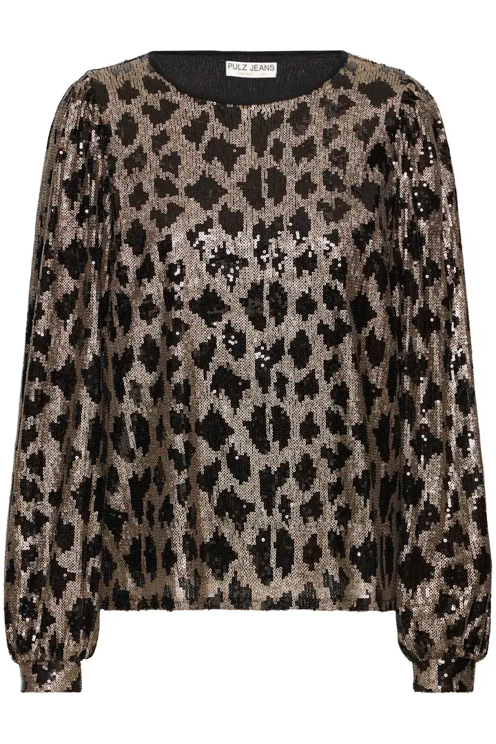 Pulz Sequin Leopard Print Top